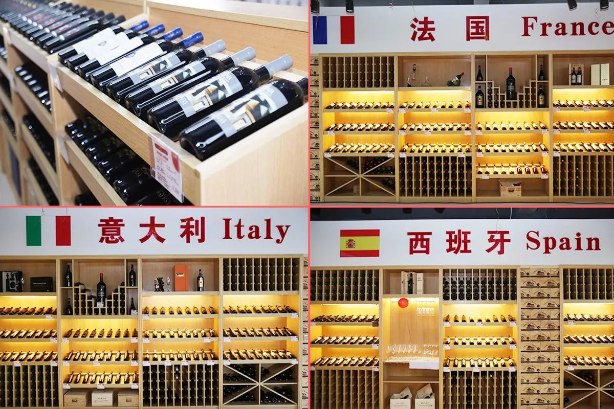 100%原瓶原装的进口葡萄酒摆满展架