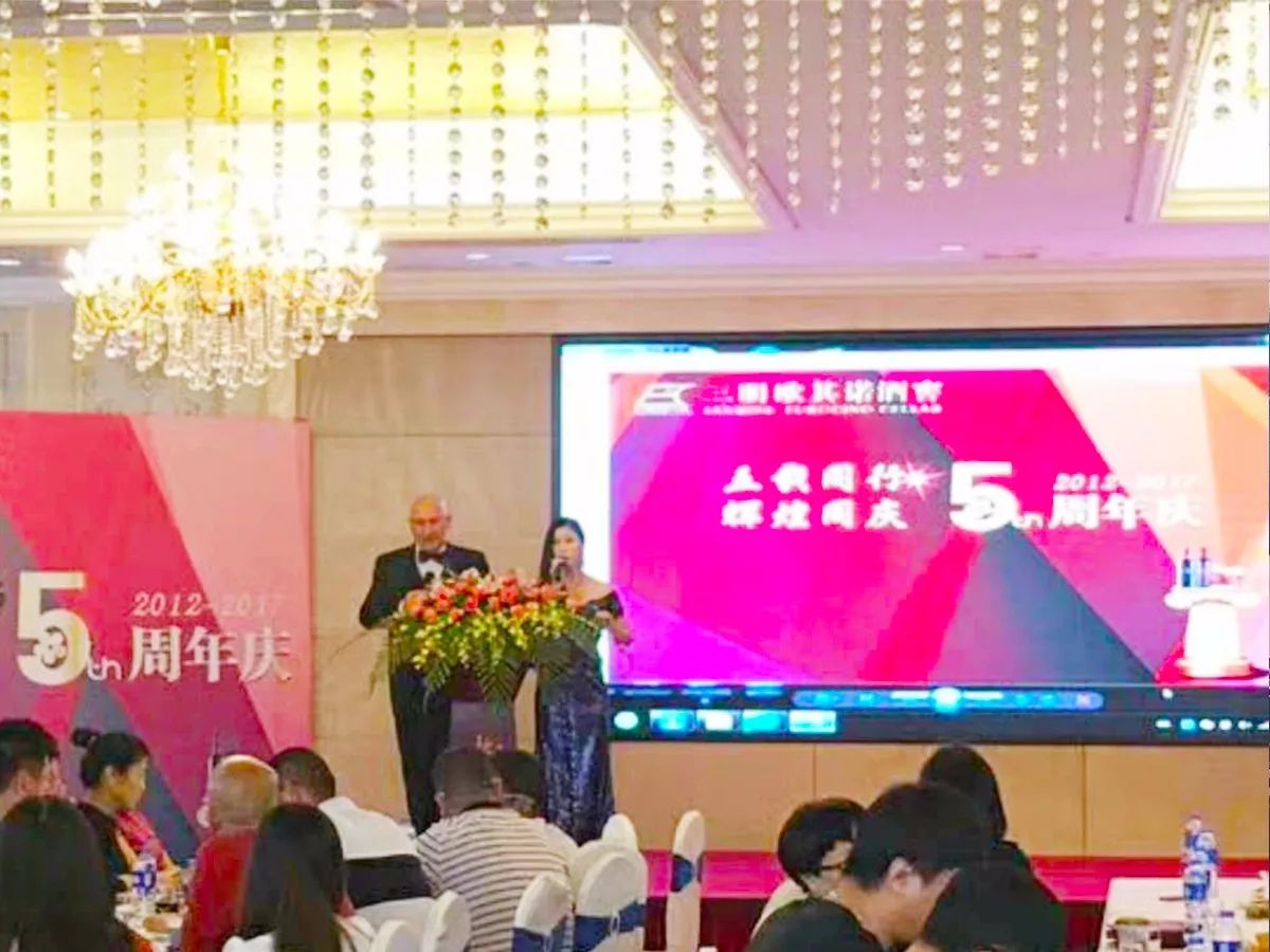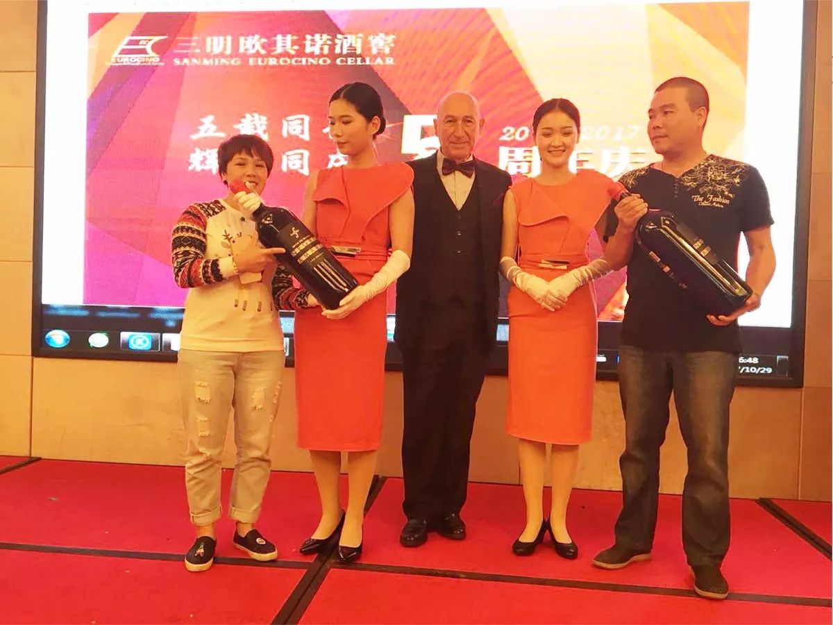 10月29日,三明欧其诺酒窖新老客户欢聚一堂,举办了主题为“五载同行·辉煌同庆”的5周年庆典,国际名庄弗罗森诺庄主“巴爷”不远万里前来祝贺。