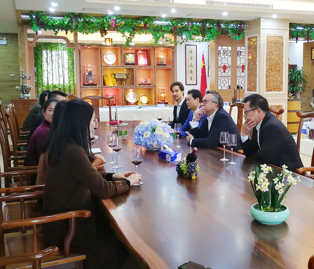 2月27日,国际名庄彼西尼的庄主马里奥一行受邀到访欧其诺酒业总部,与吴志民董事长洽谈新品合作,共进午餐,并给欧其诺酒业拜年,送来诚挚的祝福。