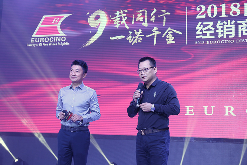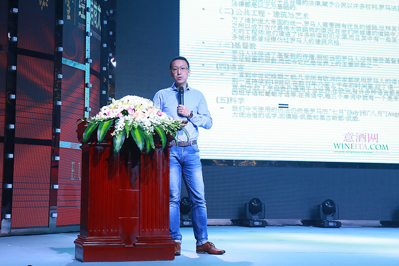 看突然被cue到台上销售总监曾哥,台上变成两个人,他们在交流欧洲文化与葡萄酒文化,