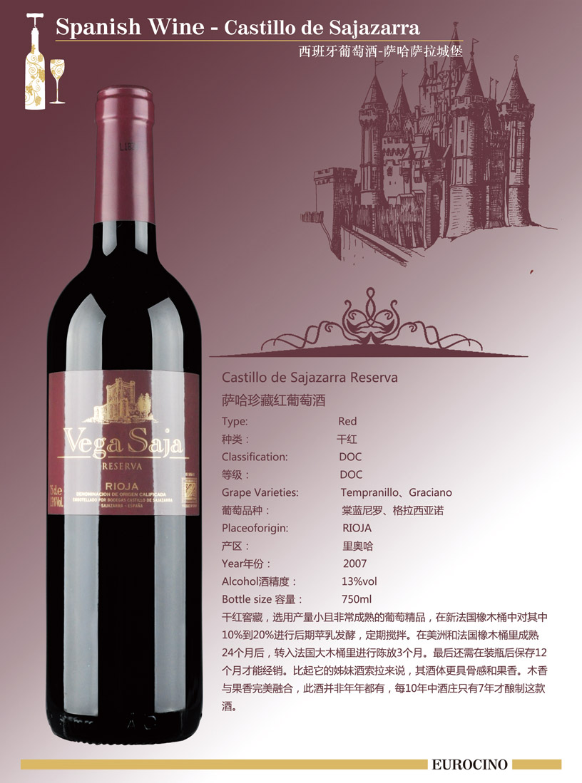 品酒师推荐:干红陈酿,采用棠兰尼罗和格拉西亚诺葡萄酿造。在美洲和法国橡木桶中陈放18个月后,在法国大橡木桶(2.05万升)中完成三个月的细腻酿造过程 。装瓶至少6个月后才能推向市场。这是一款地道的里奥哈陈酿,带有现代韵味,饮来令人格外愉悦。