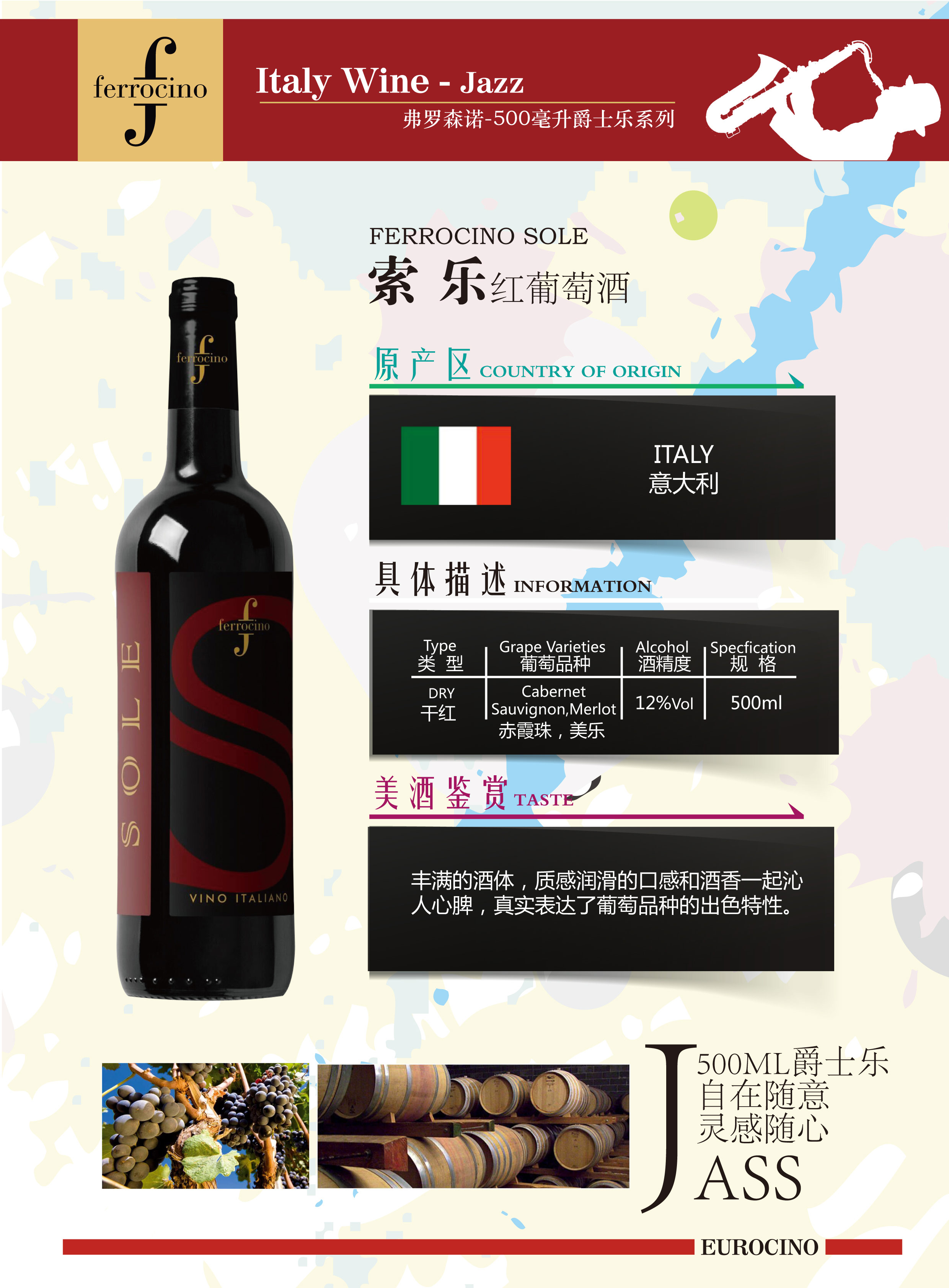 类型:干红 Red 产区:意大利ITALY 酒庄:弗罗森诺 年份:2014 酒精度:12%vol 容量:500ml 葡萄品种:赤霞珠Cabernet Sauvignon,美乐Merlot 品酒师推荐:丰满的酒体,质感润滑的口感和酒香一起沁人心脾,真实表达了葡萄品种的出色特性。