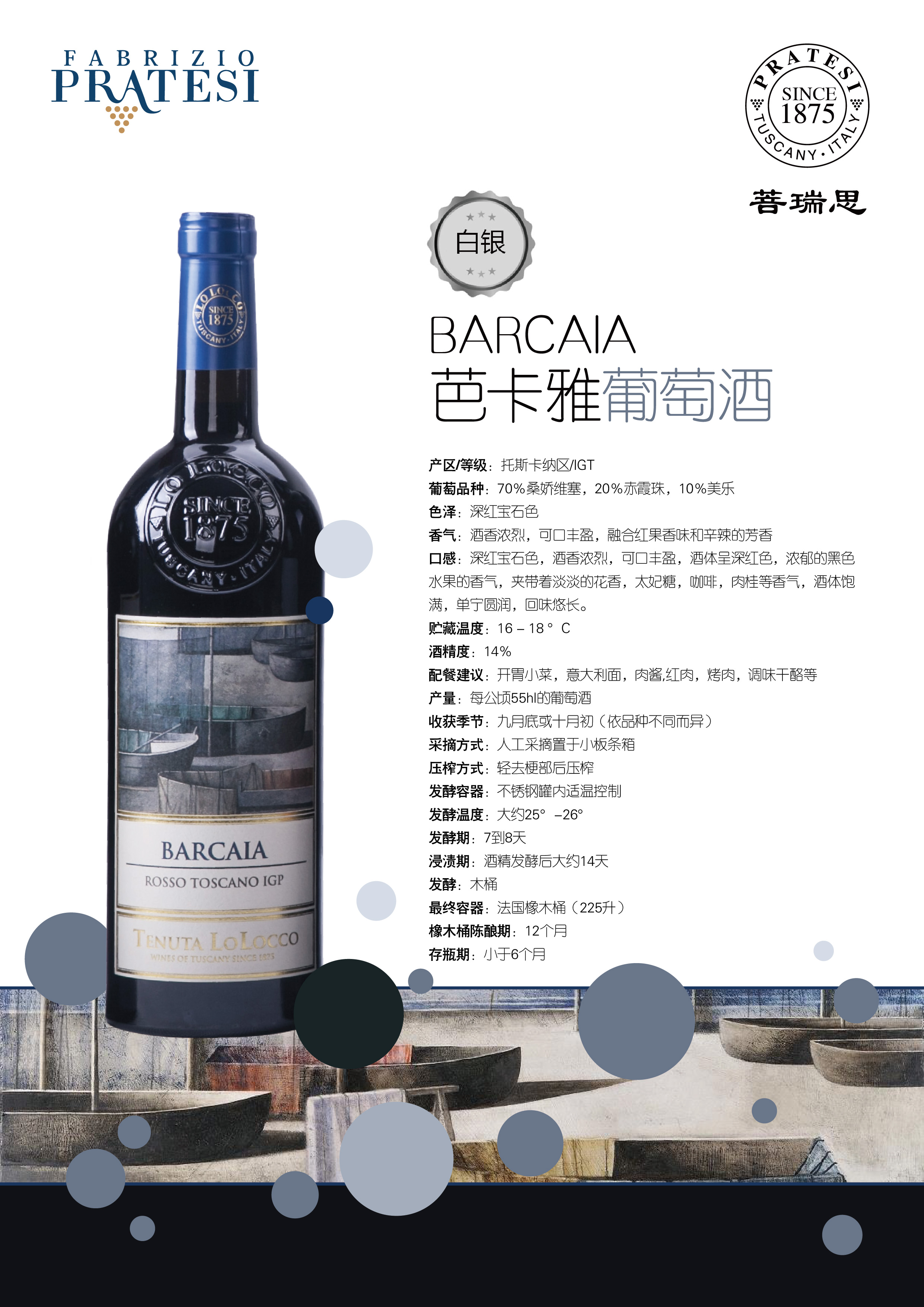 葡萄品种:桑娇维赛sangiovese, 赤霞珠Cabemet Sauvigno 美乐Merlot