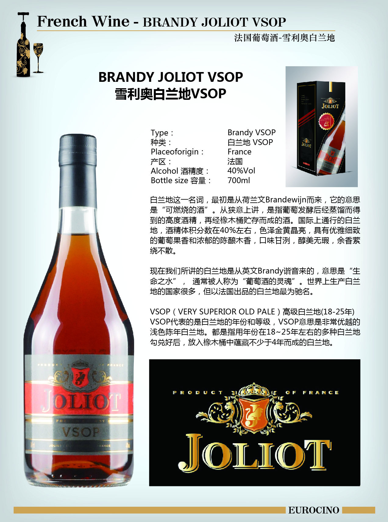 类型:V.S.O.P.(高级白兰地) 产区:法国(France) 容量:700ml 酒精度:40%vol 葡萄品种:白玉霓 品酒师推荐:在口中留存良久,渐渐披露其味道的精华,舌头上留下点点浓郁的果甜味道,和谐有致,悠长的后味在口中久久回荡。