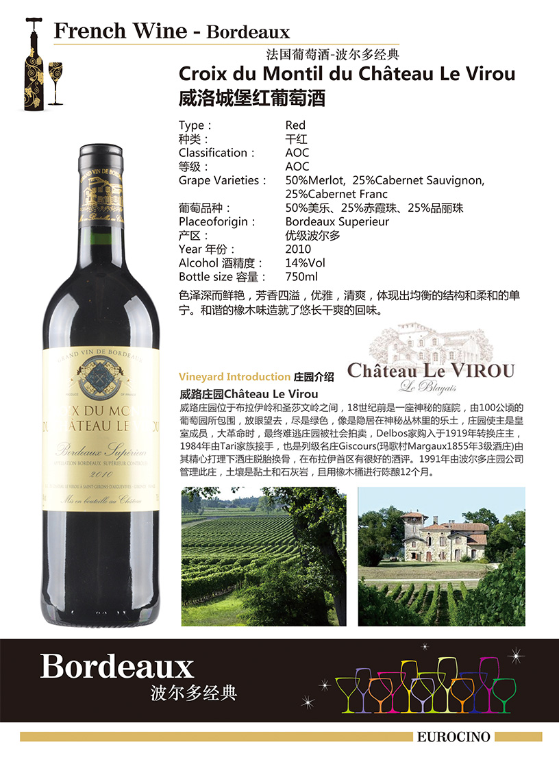 葡萄品种:50% 美乐, 25% 丽品珠Cabernet Franc,25% 赤霞珠Cabernet Sauvignon