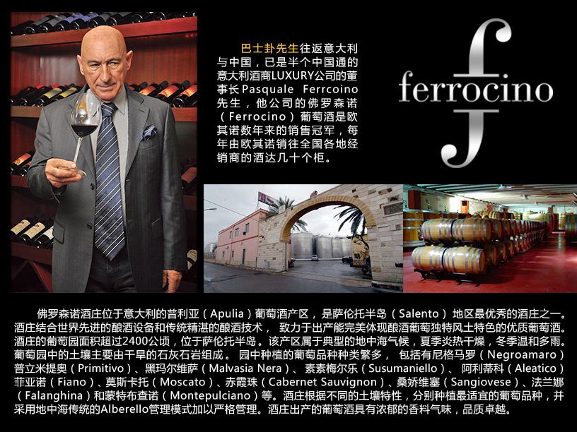 类型:半干 Semi-Dry 产区:意大利ITALY 酒庄:弗罗森诺酒庄 年份:2013/2014 酒精度:12%vol 容量:750ml 葡萄品种:赤霞珠Cabernet Sauvignon美乐Merlot 品酒师品鉴:酒液反射出明显的石榴红色,非常柔顺且和谐黑樱桃的果香。