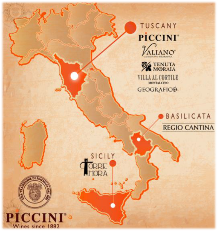 意大利的PICCINI彼西尼酒庄起源于1882年,由Angiolo Piccini先生在托斯卡纳(Tuscany)基昂第Chianti产区中心地带创立。